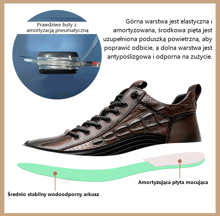 【39-45】Modne włoskie buty męskie ze skóry bydlęcej, wzór krokodyla, podeszwy na poduszkach powietrzn